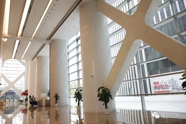 当你进入到建筑内部,你会发现"新锐"、"前卫"、"时尚"是它内部装饰的代名词。整个空间耸立着多条白润如玉的人造石圆柱,温润的质地,美观而高雅,恰似朝日升起前的清爽、明净,让你的眼光不自觉的就被它所吸引过去。